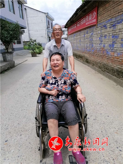 只要遇到好天氣,張業(yè)印就會用輪椅推著妻子到村部暢亮的大院巴上曬太陽,或一起到社區(qū)里鄰里之間串個門,一起聊家常;有時還會推著輪椅遠到陜南民俗村第一村的魯家大院轉一轉,讓妻子始終保持著愉悅的好心情。