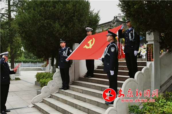 在巍然聳立的烈士紀(jì)念碑前,全體民警輔警整齊列隊(duì)、莊重肅立。民警代表首先向英雄烈士敬獻(xiàn)了花籃,全體人員脫帽肅立、鞠躬默哀,并依次上前瞻仰英雄烈士,通過回顧英雄事跡,表達(dá)對(duì)革命先烈的深切悼念和無限哀思。隨后,全體黨員同志站在烈士紀(jì)念碑前高舉右手,莊嚴(yán)宣誓,在鏗鏘誓言中重憶入黨入警初心、告慰英靈。