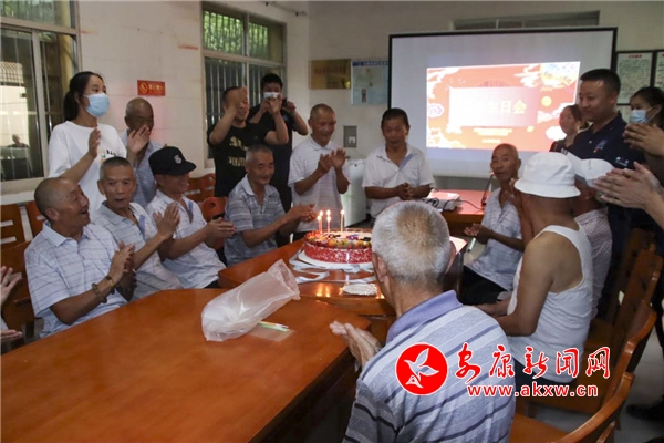 活動現(xiàn)場,他們?yōu)槔先藗兯腿ヅD?、礦泉水、牙膏等生活用品,宣講防疫小知識,并為11位老人集體慶生,為他們精心準備了生日蛋糕和禮品。老人們圍桌而坐,一起唱生日歌,現(xiàn)場其樂融融。
