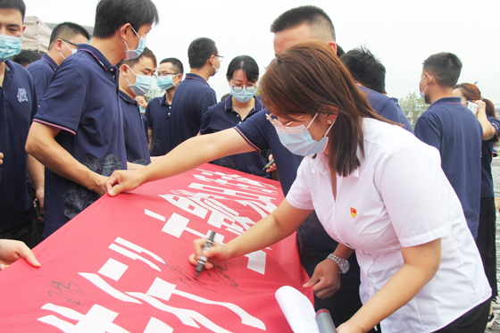 隨后現(xiàn)場(chǎng)職工還在無(wú)償獻(xiàn)血?jiǎng)訂T橫幅上集體簽名留念。