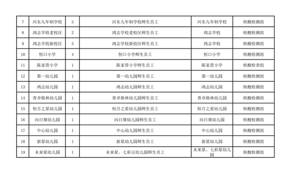 按行業(yè)、類別、區(qū)域,共設置19個采樣點、40個采樣臺(見附件),具體由各行業(yè)牽頭部門、責任單位統(tǒng)一安排采樣點設置、人員組織、秩序維護,檢測對象按照牽頭部門、責任單位的具體要求,分時段有序到指定地點進行采樣,避免人群聚集。