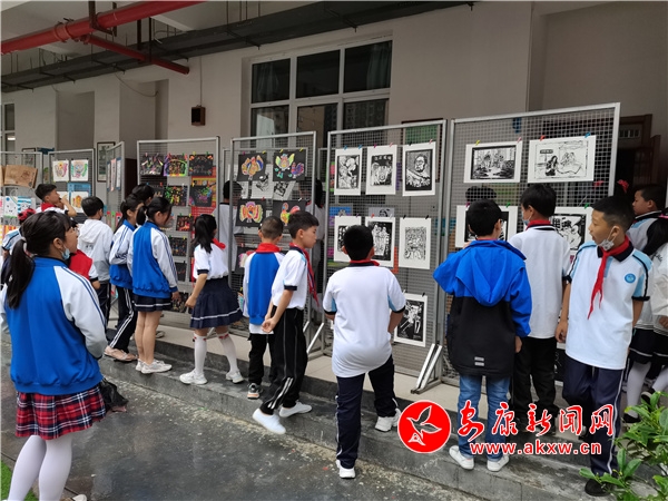 展板前,師生們紛紛駐足欣賞,不時發(fā)出贊嘆聲,校園瞬間彌漫著一股濃濃的藝術氣息,使廣大師生在緊張忙碌的工作、學習之余感受到美術的獨特韻味,校園生活的別樣風采。