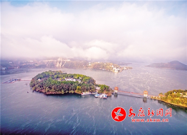 初冬的清晨,瀛湖風姿綽約、曼妙無比。起初湖水像是受熱不均的沸水,這里一點,那里一塊冒著熱騰騰的青煙,如絲如縷,在水面上輕盈地飄動、游離、撕扯,如慵懶自在的白云,把天空、湖水襯托得更藍。漸漸地,煙嵐越來越濃,越來越多,像化不開的乳汁,最后整個湖面煙波浩渺,小船和遠山若隱若現(xiàn),似人間童話仙境。這樣的山圍繞著這樣的水,這樣的水倒映著這樣的山,再加上湖中帆影點點,白鷺行行,小島林立,魚群結對,有種人在畫中游的感覺。深冬,總會落一兩場雪。那雪,極富層次。山下,素雪輕薄覆蓋;山上銀裝素裹,玉潔冰清。湖水則咕嘟咕嘟冒著熱氣,白綠相配,分外醒目,似丹青妙手繪制的山水畫,又似巧手繡娘精繡的刺繡,美輪美奐,惹人愛憐。
