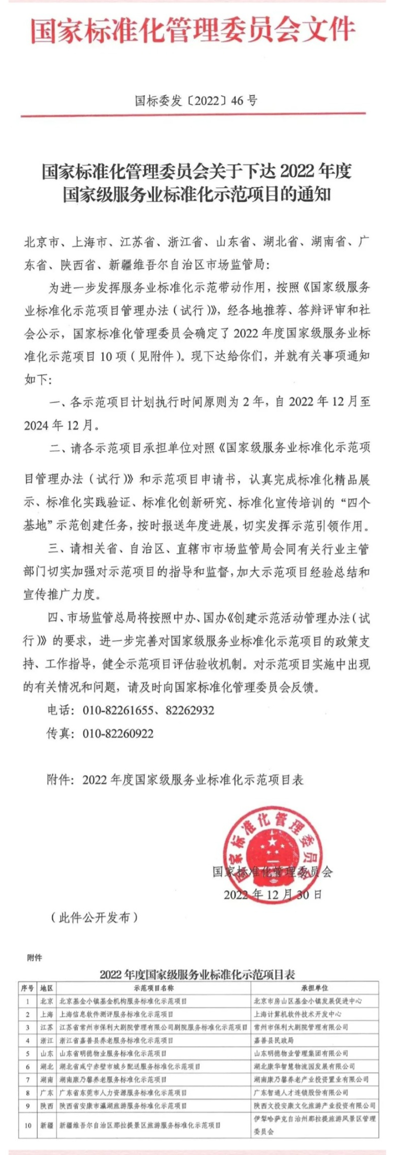 2022年12月30日,國家標(biāo)準(zhǔn)化管理委員會(huì)下達(dá)全國十個(gè)國家級服務(wù)業(yè)標(biāo)準(zhǔn)化示范項(xiàng)目,“陜西省安康市瀛湖旅游標(biāo)準(zhǔn)化示范項(xiàng)目”,經(jīng)過資審、文審、選拔、答辯、公示等程序,從全國一百余家單位中脫穎而出、光榮上榜,成為陜西省第一個(gè)國家級旅游標(biāo)準(zhǔn)化示范項(xiàng)目。