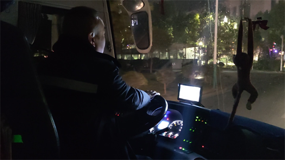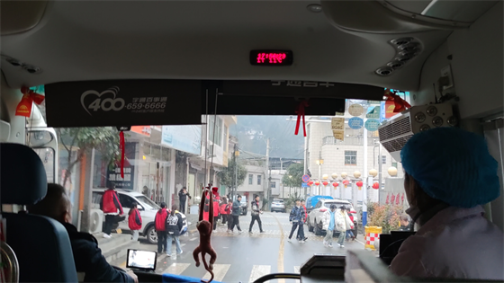 環(huán)顧車內,面包、牛奶、熱水……這里更像是他們的第二個家。我和司機師傅開玩笑說:“今天出發(fā)夠早的啊,太陽都還沒上班呢?!彼緳C輕描淡寫的說:“這算晚的了,以前去更遠的鎮(zhèn)上,四五點就要出發(fā)?!彼p眼筆直的看向前方,仿佛看見了比路更多的東西,而在我眼里,那不過是車燈照不到盡頭的一片迷霧。