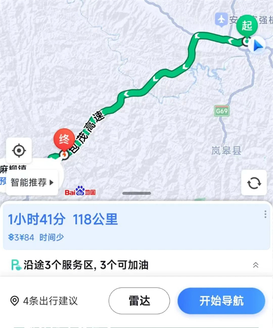 此行的目的地是紫陽縣麻柳鎮(zhèn),需駐扎一天,在當地組織一場獻血活動。此刻導航上它距血站118公里。