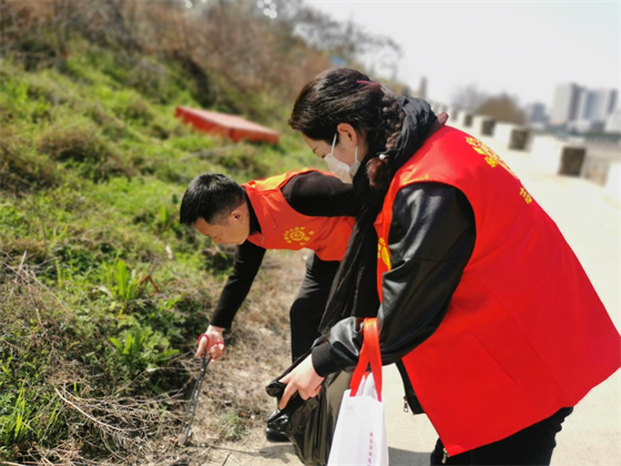 志愿者們?cè)跐h江邊開展生態(tài)環(huán)保、垃圾分類宣傳,并清理了河道邊的空水瓶、白色垃圾、煙頭等垃圾。