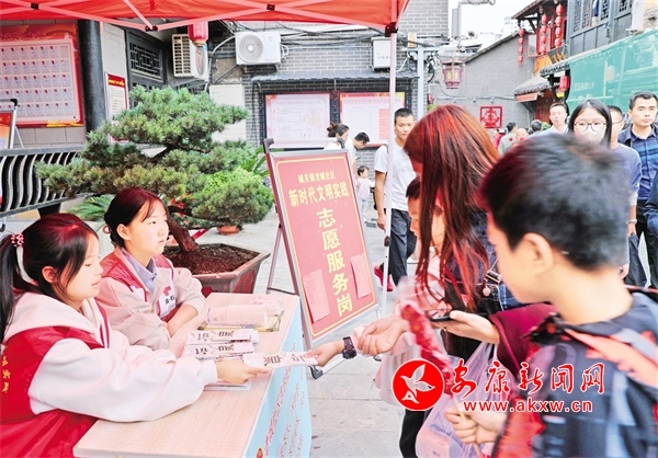 中秋國慶節(jié)假期,石泉縣在景區(qū)景點以及人流、車流集中地安排志愿服務點,積極組織文明實踐志愿者,為游客提供旅游咨詢、文明引導等服務。董長松 攝