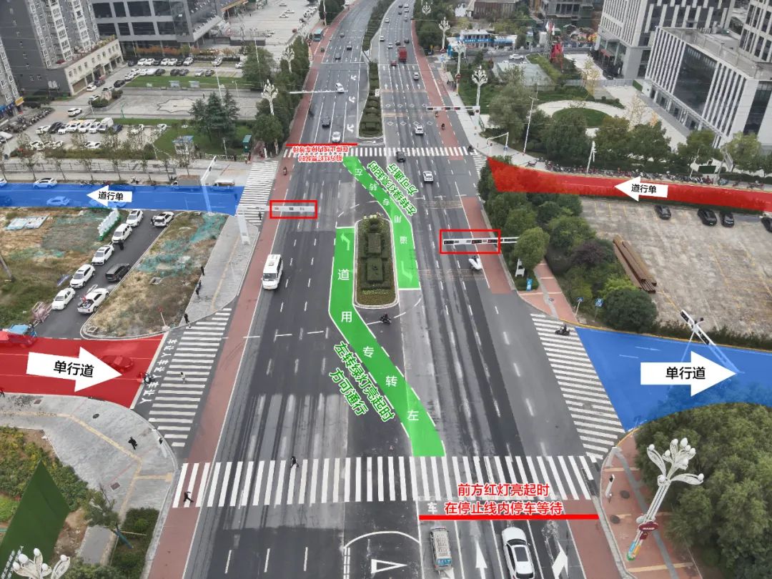 二、安康大道東西向左側(cè)車道延伸標(biāo)線(上圖綠色區(qū)域)為左轉(zhuǎn)專用道,并非左轉(zhuǎn)等待區(qū),在左轉(zhuǎn)綠燈亮起時方可通行。