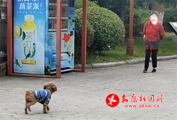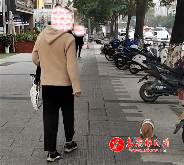11月8日下午,興安公園小廣場內(nèi)有市民遛狗未牽繩,寵物犬綠地隨意便溺。(圖文/周薇)