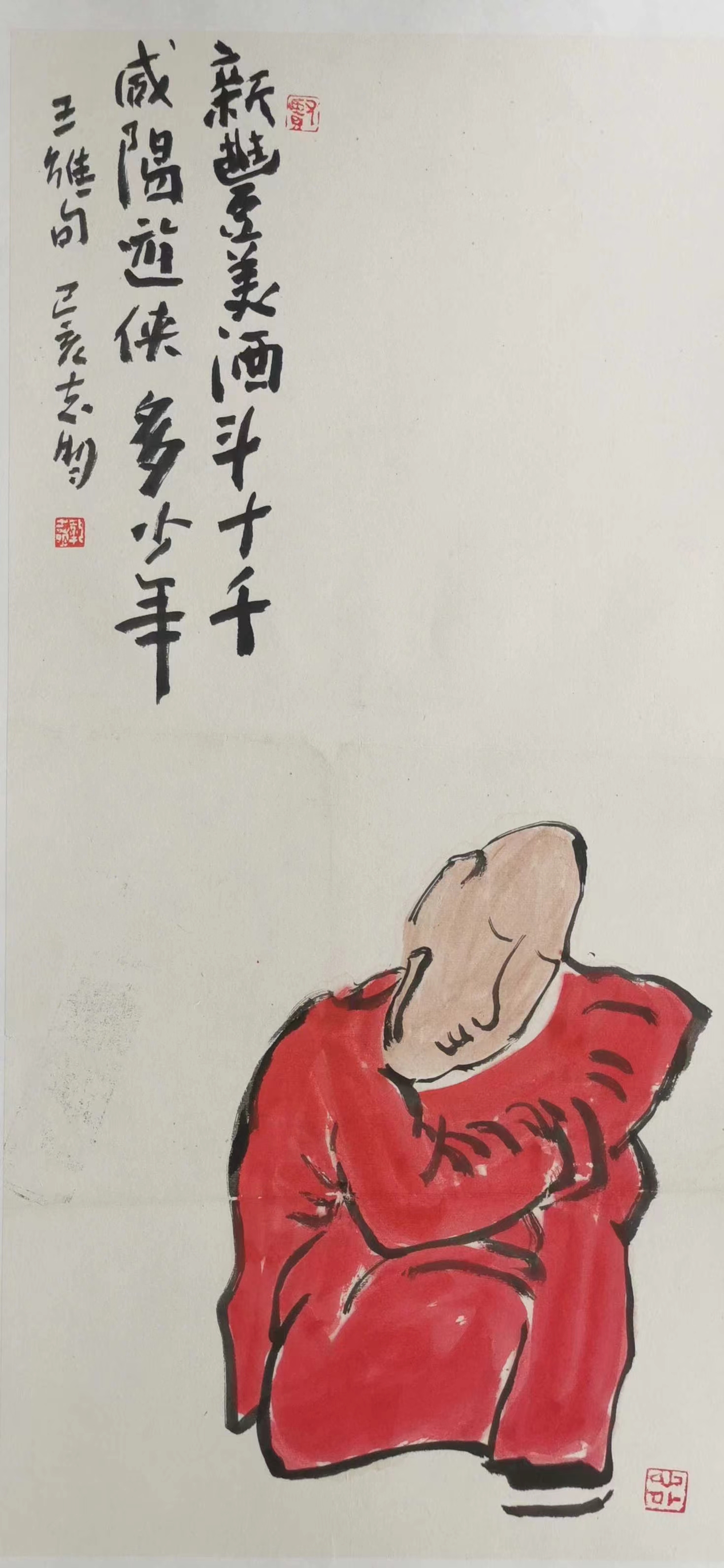 記得那一年的端午節(jié),鞏志明發(fā)來短信,是他寫的一首詩:綠粽黃酒聚江邊,白帆紅燭祭屈原。三千清淚流不得,九萬渾念飄上天。誰有郁悶誰散淡,何謂圓滑何忠奸。十丈風塵古今在,談笑真?zhèn)位聼煛?017年,我遷新居,鞏老師為我寄來小品畫《福到眼前》,我很喜歡,并懸掛至新居玄關(guān)。這些年,鞏志明老師常做影展畫展策劃及影評講座,自已也臨池不輟,水墨丹青,寄情抒懷,他的文人小品有思想性、有創(chuàng)造性。雖畫的是松風明月,小舟流水或遠古人物,但都寄托了他當下的心境,以消塊壘。誠如有人評論他為“吾師真文人,畫亦真性情!”他不僅只是身居畫室的怡情文人,他亦是心憂天下的豪俠。面對世間不平事,他也是激揚文字,揮斥方遒!在功利的當下,鞏志明尤其顯得難能可貴!?