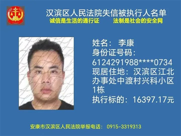 2月1日安康市漢濱區(qū)人民法院曝光新一批失信被執(zhí)行人名單快看都有誰(shuí)轉(zhuǎn)發(fā)提醒更多人↓↓↓?