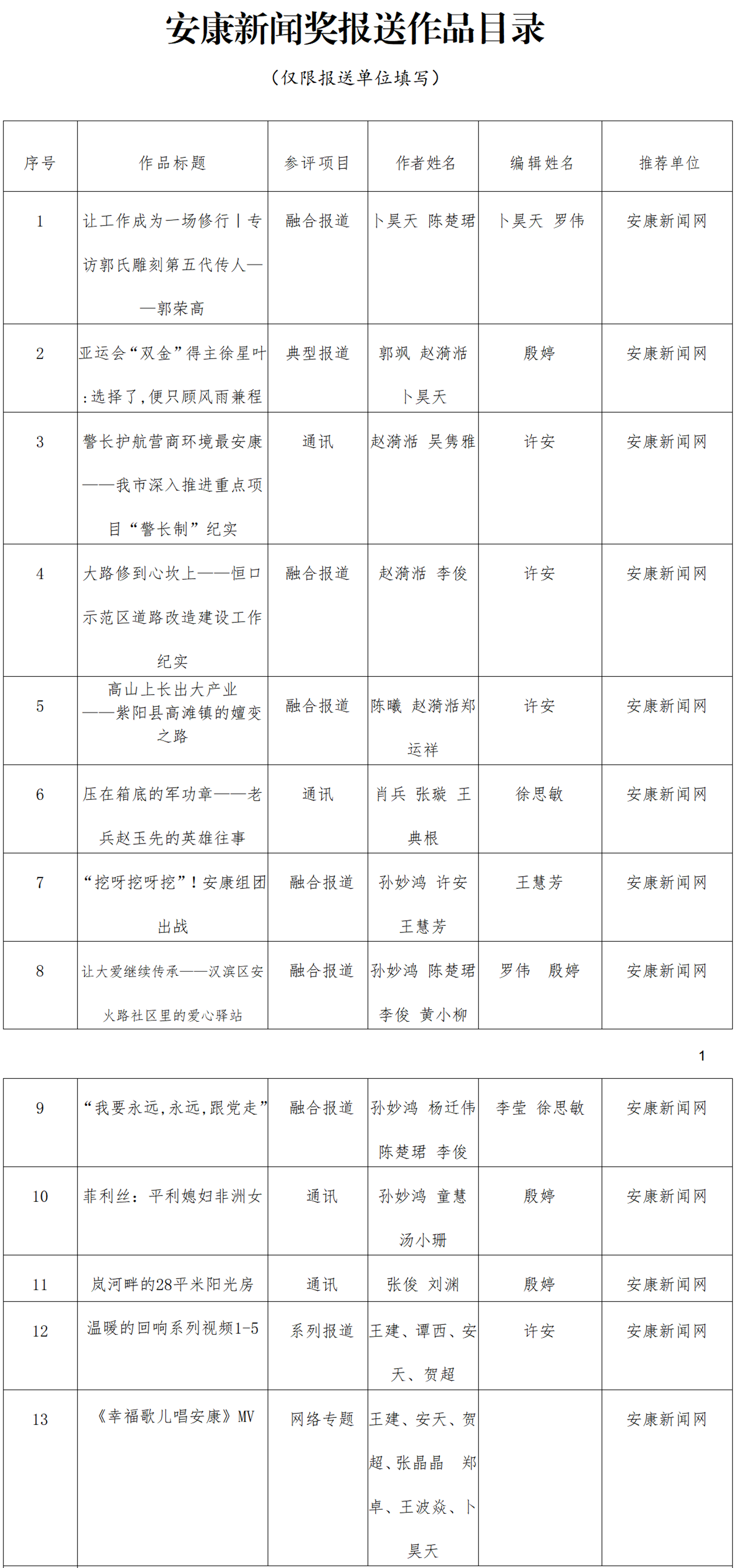 經(jīng)過編委會推薦、社黨委研究決定,擬推薦以下13件新聞作品參評2023年度“安康新聞獎”。公示時間從2024年3月25日至2024年3月29日,公示期為5個工作日。如有不同意見,請向安康日報社機關紀委、新聞管理部反映。