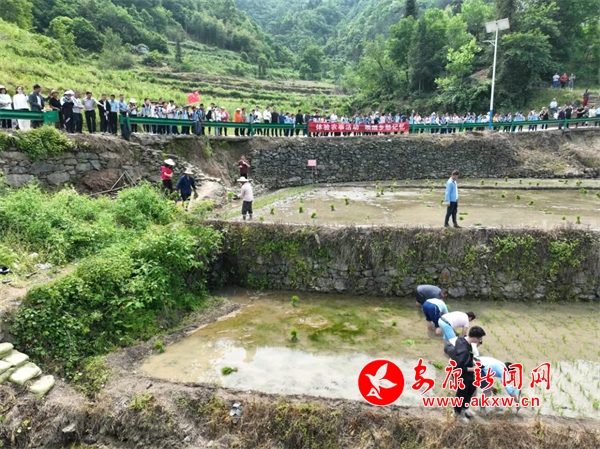 眾多游人及附近村民趕來體驗(yàn)手工插秧,參加別開生面的田間趣味比賽,感受美麗鄉(xiāng)村的建設(shè)成果和傳統(tǒng)農(nóng)事魅力。上午11時(shí)許,隨著裁判一聲令下,插秧比賽正式拉開帷幕,稻田頓時(shí)變?yōu)橘悎?chǎng),來自全鎮(zhèn)10個(gè)村的插秧選手們,卷起褲管,擼起袖子,赤腳走進(jìn)稻田,一手持秧苗,一手飛快地分苗、插秧,大家你追我趕,紛紛拿出看家本領(lǐng)一展高下,觀賽者們加油助威,現(xiàn)場(chǎng)一派熱火朝天的勞動(dòng)場(chǎng)景。