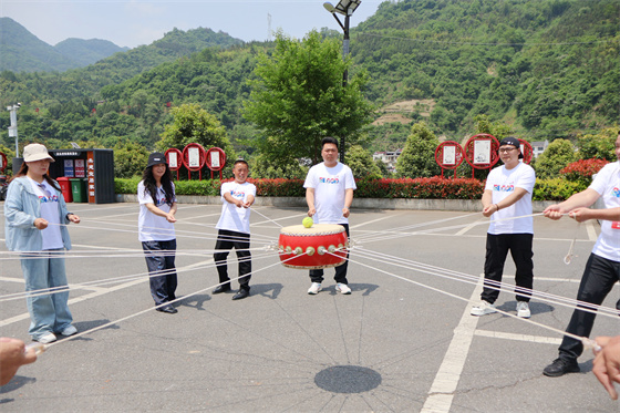 隨后,一眾獻(xiàn)血者乘著大巴迎著初夏的清風(fēng)來到了平利縣蔣家坪村。參觀結(jié)束后,獻(xiàn)血者們?cè)趯I(yè)教練的帶領(lǐng)下開展了素質(zhì)拓展訓(xùn)練,大家分別組隊(duì),繪制了精美的團(tuán)隊(duì)旗幟,喊出了響亮的團(tuán)隊(duì)口號(hào)……指壓板接力、擊鼓顛球、獨(dú)木橋、一圈到底、一個(gè)個(gè)趣味游戲讓場上隊(duì)員激情滿滿、歡樂無比,大家在一輪又一輪的比拼中體會(huì)到了對(duì)抗的激烈,也感受到了團(tuán)結(jié)的情誼,更展現(xiàn)了成分血固定獻(xiàn)血者們“勇往直前、持之以恒、永不服輸”的堅(jiān)韌精神,正如大家多年來對(duì)安康無償獻(xiàn)血公益事業(yè)的堅(jiān)守與支持。