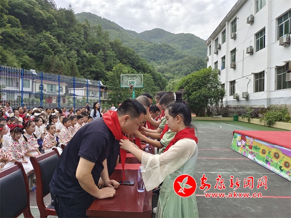 本網(wǎng)訊(通訊員?張萍)迎著火紅的隊(duì)旗,伴著嘹亮的號(hào)角,校園洋溢著節(jié)日的氛圍,5月31日,鎮(zhèn)坪縣洪石小學(xué)隆重舉行了“紅領(lǐng)巾愛祖國(guó)”新隊(duì)員入隊(duì)儀式暨慶“六一”科技藝術(shù)節(jié)。鎮(zhèn)坪縣武裝部、縣民政局、縣人社局、縣招商局、縣林業(yè)局、西安航空學(xué)院等相關(guān)領(lǐng)導(dǎo)出席此次活動(dòng),并為學(xué)校帶來教育幫扶資金,給孩子們送來了籃球、書包等禮品并致以節(jié)日的慰問。