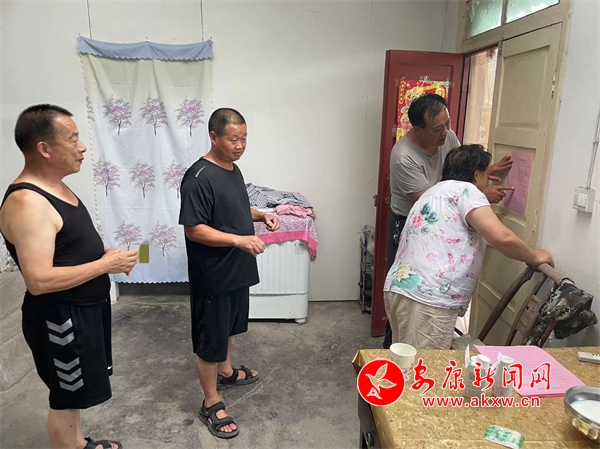 “奶奶,這是咱屋的防汛明白卡,我把我的電話給您存到手機(jī)里了,過段時間要是雨下大了您就給我打電話!”