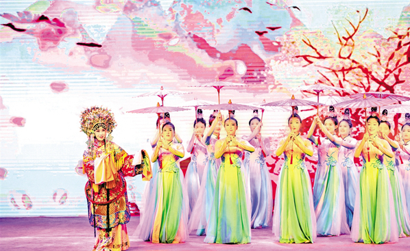 巡演活動(dòng)現(xiàn)場,演員表演漢劇歌伴舞《大美安康》。楊寧 攝?
