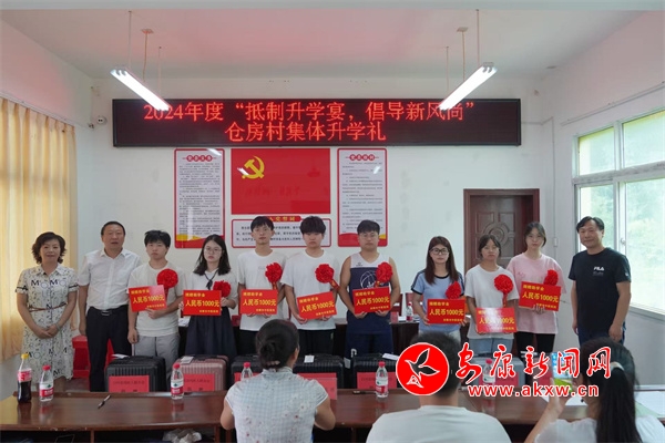 自2017年白河縣首場(chǎng)集體升學(xué)禮在倉(cāng)房村順利舉辦以來(lái),倉(cāng)房堅(jiān)持村連續(xù)七年為準(zhǔn)大學(xué)生們舉辦集體升學(xué)禮儀式。8月9日,倉(cāng)房村攜手市中醫(yī)醫(yī)院和縣殘聯(lián)在全鎮(zhèn)率先開(kāi)展集體升學(xué)禮儀式,在儀式上市中醫(yī)醫(yī)院和縣殘聯(lián)分別為準(zhǔn)大學(xué)生們送上助學(xué)金和行李箱,并勉勵(lì)他們求學(xué)路上要堅(jiān)定理想,培養(yǎng)良好的人生觀、價(jià)值觀,勤奮學(xué)習(xí)練就過(guò)硬本領(lǐng),回報(bào)家鄉(xiāng)。