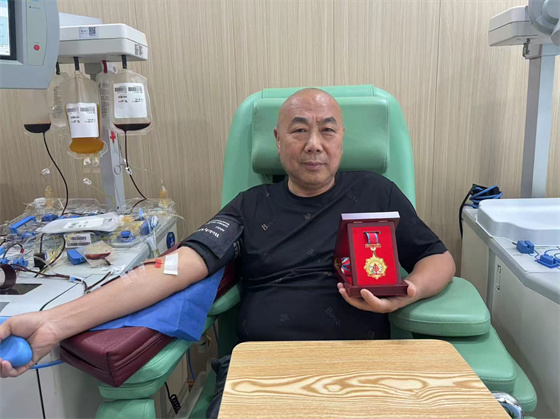 從那時起,李軍開啟了自己的獻血之路,不論刮風(fēng)下雨、烈日寒冬,還是逢年過節(jié),只要接到血站通知,他總會安排好手頭工作來到血站擼袖獻血。記得那是2021年7月15日,盡管天氣惡劣,李軍還是準時到達獻血屋,頭天晚上接到血站電話的李軍,第二天早早向自己的公司請了個假,立馬趕往獻血屋捐獻血小板。對于獻血這件事,從不耽誤、從不含糊。因為他覺得,自己的付出,能使生命得以重生,是自己人生價值的最好體現(xiàn)。李軍:獻完這次血,我就光榮“退休”了