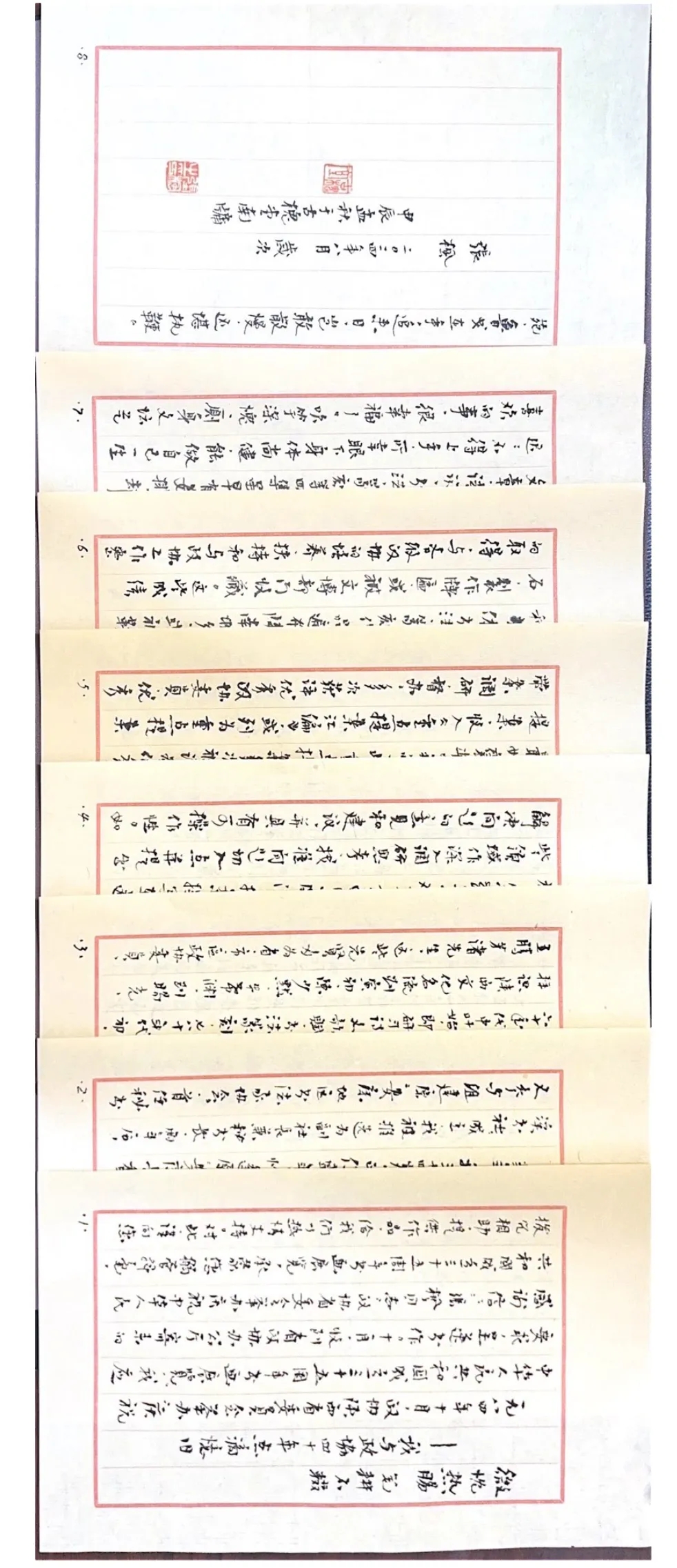 紀(jì)念品是一本精致的影集,扉頁上題有“張楓同志留念 省政協(xié)辦公廳贈 八四.十”。題字為毛筆所書,亦加蓋辦公廳印鑑,雖兩行小字,然筆力遒勁,頗得法度,顯得十分清麗典雅。