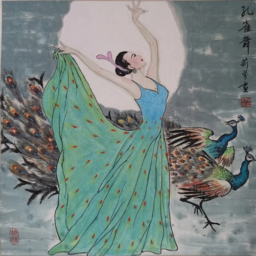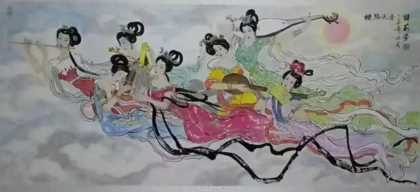 解大姐是陜北人,性格開朗、直率,說話中間或帶出一些濃重的陜北口音。雖說她主業(yè)從于政界,但她微笑的背后卻潛藏著不可掩飾的藝術(shù)天賦,揮發(fā)著令人奪目的藝術(shù)才情。繁雜的政務(wù)工作之余,她創(chuàng)作不輟,堅持不懈,居然在多個藝術(shù)門類收獲頗豐,好評連連。寫小說,她寫出幾十萬字的長篇出版發(fā)行;寫劇本,竟拍成了電影予以公映;學(xué)國畫,亦讓藝術(shù)界的大咖贊口不絕。我雖不才,空有浮名,但深耕藝界多年,對于其中的好賴還能分出一二。我感到,一個人的人品和藝品基本一致,解大姐的藝術(shù),是扎根于她熟悉的陜北大地的藝術(shù),是生長在山峁峁上經(jīng)歷風(fēng)霜雨雪的藝術(shù),就像那陜北倔強的疙瘩柳,散發(fā)著對土地對生活的親近和熱情,對人生價值實現(xiàn)的不屈和追求??吹剿膰嬓伦鳎嘘儽奔艏埖让耖g藝術(shù)的滋養(yǎng)和影響,真切而樸實。她的飛天人物系列,泥古而不落窠臼,使我想到疙瘩柳條隨風(fēng)擺動的婀娜風(fēng)姿,溫溫潤潤,令人遐思和向往;她的花鳥畫作,使我想到陜北山野一片蒼茫之間,一朵兩朵盛開的山丹丹花,嬌艷得令人不忍觸手;她的山水畫作,又猶如陜北山原上嫩黃的棗花,洋溢著撲面而來的質(zhì)樸、清新和率真之氣。
