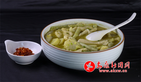 “甜酒火燒饃”,是石泉縣幾代人美食智慧的積累,傳承至今,是深受人們喜愛的小吃。它是采用古老傳統(tǒng)老酵面加甜酒發(fā)面,將老酵面、甜酒加入溫水后,再加入面粉一起攪拌均勻后再揉面。把面團(tuán)揉制光亮后放置幾小時(shí)待其自然發(fā)酵。等到面團(tuán)成發(fā)泡蜂窩狀態(tài),才可以開始將面團(tuán)做成圓形,在用搟面杖搟薄圓形面團(tuán)放入柴火灶鍋中,撒上芝麻,小火炕制一面黃在翻面炕制兩面色澤金黃。吃進(jìn)嘴里有小麥淡淡的清香味,也有甜酒的甜香味,回味無(wú)窮。杜光發(fā)制作的這道小吃獲得安康市2024年“安康味道”名小吃。