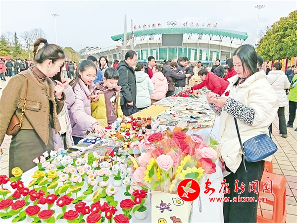 今年春節(jié)期間,胡運(yùn)翠接到了漢濱區(qū)文化館的電話,邀請(qǐng)她去金州廣場(chǎng)非遺展示區(qū),展示她的手工編織作品,同她的作品一同列入展示的還有花饃、糖畫(huà)、手工竹節(jié)人等。她精心準(zhǔn)備了許多手工編織品,在金州廣場(chǎng)右側(cè),胡運(yùn)翠的攤位前圍滿(mǎn)了小朋友,他們被這些栩栩如生的小動(dòng)物深深吸引,紛紛拉著家長(zhǎng)購(gòu)買(mǎi)。胡運(yùn)翠一邊熱情地向顧客介紹自己的作品,一邊現(xiàn)場(chǎng)編織,嫻熟的手法引得眾人連連稱(chēng)贊。