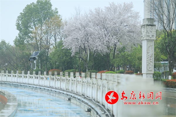 花朵盛開,柳樹垂絲,遠(yuǎn)處的城市建筑若隱若現(xiàn)。人們?cè)诮吢健⑿蓓?,享受著春日里的美好時(shí)光。此時(shí)的畫面將現(xiàn)代文明與自然生態(tài)完美融合,讓人感受到城市中一抹特有的清新與寧?kù)o。