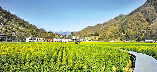 春暖花開,旬陽市仁河口鎮(zhèn)水泉坪千畝油菜花海競相綻放,慕名而來的游客們在觀光步道上觀光散步,三五伙伴一起拍照打卡、合唱民歌,欣賞高山出平川的獨特自然風(fēng)光。