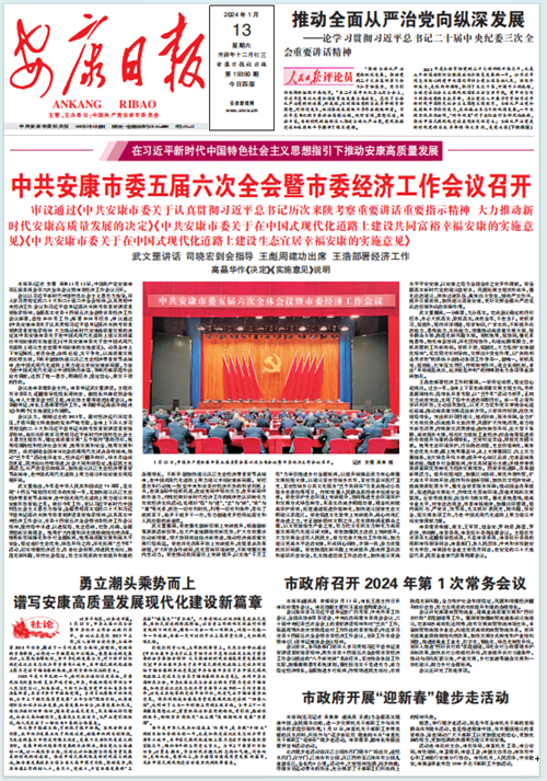 (2024年1月13日安康日報01版報道“中共安康市委五屆六次全會暨市委經(jīng)濟(jì)工作會議召開”)
