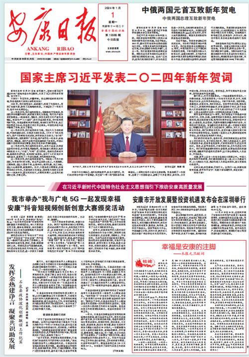 (2024年1月1日安康日報01版“幸福是安康的注腳——本報元旦獻(xiàn)詞”)