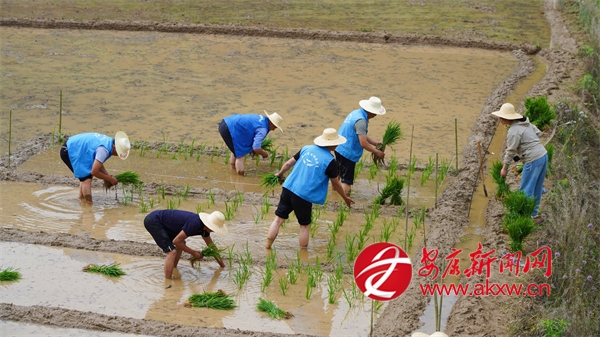 6月5日,走進(jìn)城關(guān)鎮(zhèn)漁灣村麻莊組,一片熱火朝天的農(nóng)忙景象映入眼簾。農(nóng)技人員與農(nóng)戶們并肩作戰(zhàn),共同進(jìn)行水稻插秧作業(yè)。劃線分區(qū)、精準(zhǔn)配肥、均勻撒肥、有序插秧……每一項工作都進(jìn)行得有條不紊,大家分工明確、配合默契,田間地頭處處洋溢著忙碌而歡快的氣息。