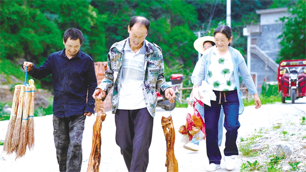 過去,鐵尺村及周邊山區(qū)豐富的農副產品常因交通不便、信息閉塞、銷售渠道單一而“藏在深山無人識”?!耙郧斑@些臘肉掛在家里,半年都賣不出去?!敝苋y看著自家的臘肉,道出曾經的無奈。