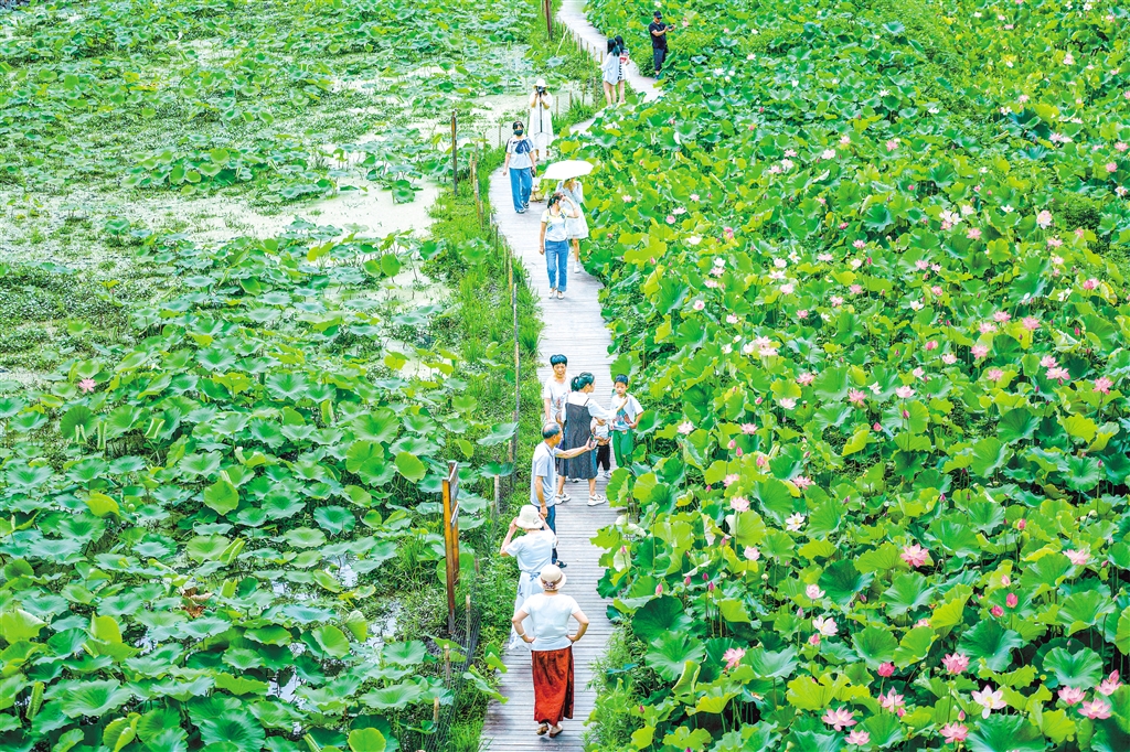 8月25日,石泉縣城關(guān)鎮(zhèn)絲銀壩村朱鹮小村景色宜人。近年來,該鎮(zhèn)依托良好的生態(tài)環(huán)境,因地制宜發(fā)展有機(jī)農(nóng)業(yè)、綠色循環(huán)、生態(tài)旅游等產(chǎn)業(yè),打造農(nóng)旅、產(chǎn)旅融合發(fā)展示范樣板。自2023年開園以來,朱鹮小村親子游、研學(xué)游、鄉(xiāng)村游持續(xù)升溫,累計(jì)接待游客超過7萬人次,旅游收入達(dá)500萬元。 董長松 攝