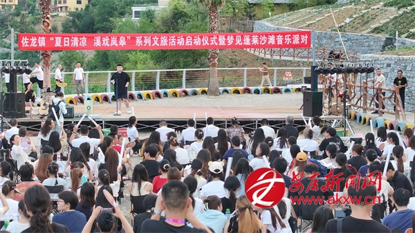 佐龍鎮(zhèn)黨委、政府因勢利導(dǎo),開發(fā)了蓬萊仙境景區(qū)及馬宗村民宿集群,又把河灣變成了露天公共文化場所。他們舉辦的沙灘音樂節(jié),邀請本地的音樂舞蹈愛好者駐場,鼓勵當(dāng)?shù)厝罕?、外來游客參與,以參與活動、宣傳活動的數(shù)量打卡積分,兌換文創(chuàng)產(chǎn)品和文化禮品。