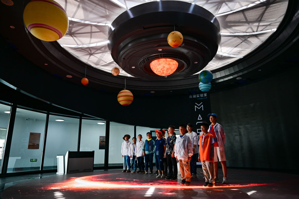 2025年7月29日,參加暑期研學(xué)的小朋友在青海省海西蒙古族藏族自治州冷湖鎮(zhèn)“冷湖實(shí)驗室”學(xué)習(xí)天文知識。冷湖鎮(zhèn)曾是因石油而興、又因油盡而沉寂的工業(yè)遺址小鎮(zhèn)。然而,得天獨(dú)厚的地理條件,讓冷湖鎮(zhèn)成為理想的觀星地。近年來,當(dāng)?shù)匕l(fā)展科幻特色文旅,讓戈壁小鎮(zhèn)煥發(fā)新的生機(jī)。冷湖天文觀測基地引進(jìn)十余家科研單位的數(shù)十臺望遠(yuǎn)鏡,依托天文資源和戈壁奇景,打造火星實(shí)驗室、黑獨(dú)山等“出圈”地標(biāo)。連續(xù)舉辦多屆的“冷湖科幻文學(xué)獎”,更讓這片土地成為科幻創(chuàng)作的新高地。冷湖鎮(zhèn)以科幻點(diǎn)亮文旅新場景,也為中國西北工業(yè)小鎮(zhèn)的轉(zhuǎn)型探索出一條充滿想象力的新路徑。