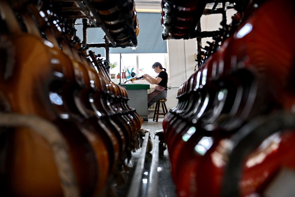 2025年5月28日,河北省武強(qiáng)縣一家樂器生產(chǎn)企業(yè)的工人在制作尤克里里。武強(qiáng)縣樂器產(chǎn)業(yè)歷經(jīng)30余年的發(fā)展,形成擁有超過150家企業(yè)、從業(yè)人員萬余人的產(chǎn)業(yè)集群,產(chǎn)品覆蓋100多個品種、400多種規(guī)格。近年來,武強(qiáng)縣依托樂器文化產(chǎn)業(yè)資源,打造集樂器加工、樂器體驗、音樂展演和休閑度假等業(yè)態(tài)為一體的周窩音樂小鎮(zhèn),同時創(chuàng)新“樂器+”鄉(xiāng)村振興模式,持續(xù)增強(qiáng)樂器產(chǎn)業(yè)的富民強(qiáng)縣作用。2024年武強(qiáng)縣樂器產(chǎn)業(yè)實(shí)現(xiàn)營收23.8億元,旅游收入超10億元。