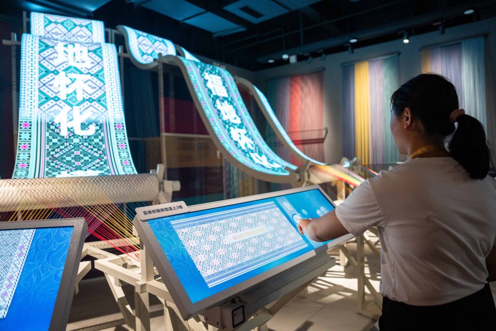 2025年9月16日,游客在湖南省懷化市五溪非遺園體驗數(shù)字化織錦。五溪非遺園于2025年5月正式開園,包含非遺廣場、數(shù)字體驗空間和研學(xué)工坊三大板塊,運(yùn)用VR、AR、全息投影等技術(shù)打造42個沉浸式非遺體驗項目。目前,懷化以五溪非遺園為抓手,推出非遺主題研學(xué)項目、開發(fā)深度互動項目,構(gòu)筑特色文化產(chǎn)業(yè)體系,吸引更多人了解、學(xué)習(xí)非遺,讓傳統(tǒng)技藝成為城市發(fā)展的文化動力。