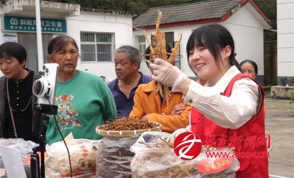 “家人們看,這是咱們本地農民自己曬的香菇,肉質厚實,泡發(fā)后香味特別濃,炒菜燉湯都鮮……”10月15日,由寧陜縣婦聯(lián)、縣郵政分公司、城關鎮(zhèn)黨委聯(lián)合舉辦的“巾幗助農 寧陜好物”公益直播活動在城關鎮(zhèn)斜峪河村舉行。主播徐小妹正對著手機鏡頭,將周邊村莊農戶的特產進行展示,讓寧陜山貨通過直播“飛”向全國網(wǎng)友。