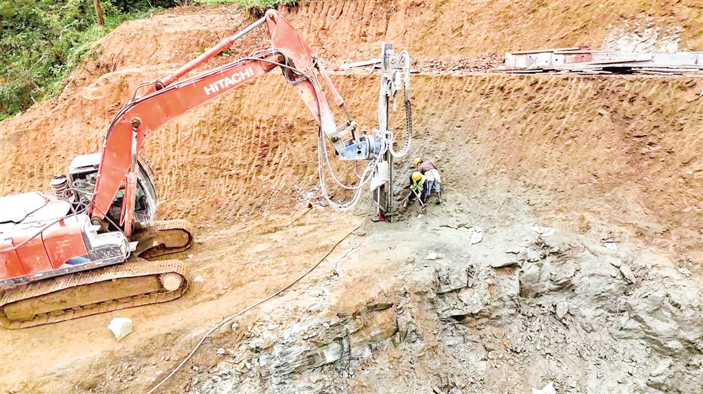 在鳳凰山隧道引線工程(進(jìn)口段)項(xiàng)目建設(shè)現(xiàn)場,機(jī)器轟鳴,挖掘機(jī)揮舞著鏟斗挖掘土石,運(yùn)輸車輛往來穿梭,配合默契。工人們鉚足干勁,爭分奪秒搶抓工期,現(xiàn)場一派熱火朝天的施工景象。
