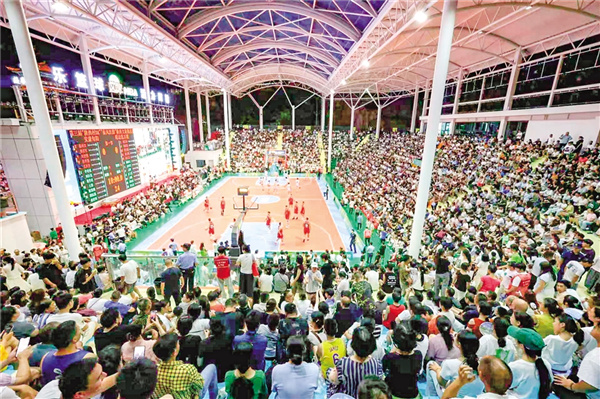 聚人和:回應(yīng)民心所向。作為全國群眾體育先進(jìn)縣,嵐皋籃球歷史可追溯至1936年。從機(jī)關(guān)到村鎮(zhèn),自發(fā)建場(chǎng)、組隊(duì)、辦賽蔚然成風(fēng)。全縣擁有智能開合式體育場(chǎng)館、115個(gè)標(biāo)準(zhǔn)化籃球場(chǎng),經(jīng)常參加體育鍛煉的人數(shù)占比達(dá)52.1%,人均體育場(chǎng)地面積2.9平方米。2020年才實(shí)現(xiàn)整縣脫貧摘帽的嵐皋,人民對(duì)美好生活與家鄉(xiāng)發(fā)展的渴望極其強(qiáng)烈?!按錌A”恰如其分地滿足了群眾“既要樂子,也要路子”的現(xiàn)實(shí)需求,迅速凝聚起求變、求興、求富的強(qiáng)大共識(shí)。