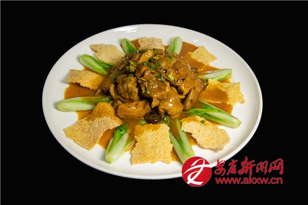 2022年,王鵬注冊(cè)成立了寧陜縣關(guān)口菜根香餐飲文化有限公司,這不僅是為了傳承陜菜傳統(tǒng)文化的精髓,更是將中國(guó)古典文化中的“匠心”與“堅(jiān)守”融入烹飪之道。在其精湛的廚藝之下,每一道菜都承載著文化與創(chuàng)意。天麻燒乳鴿,鴿肉鮮嫩,天麻咸鮮,是一道難得的養(yǎng)生菜品。“響堂板栗雞”以玉米鍋巴、板栗土雞為主料烹制而成,鍋巴在口腔里發(fā)出咔咔脆的聲音,就有了形象的“響堂”,每一口都是味蕾的享受,于2016年入選“陜西名菜”。