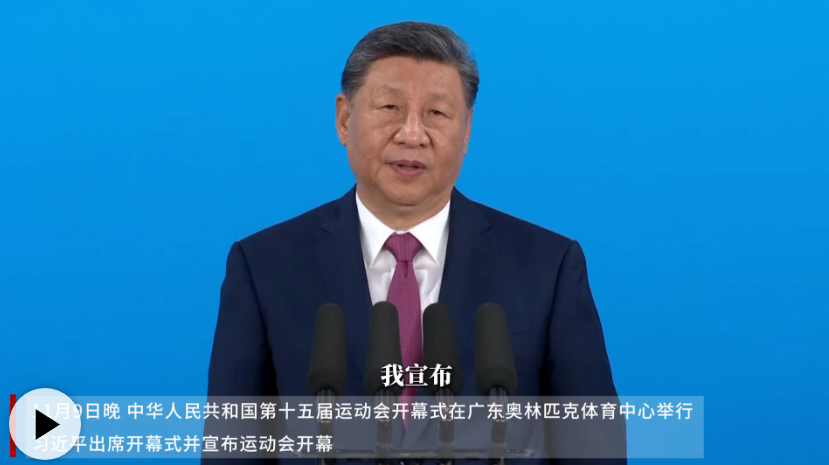 11月9日晚,中華人民共和國第十五屆運動會在廣東省廣州市隆重開幕。中共中央總書記、國家主席、中央軍委主席習(xí)近平出席開幕式并宣布運動會開幕。