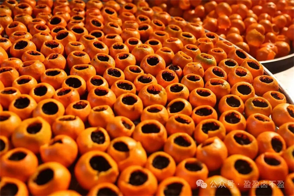 茶廠的工人們早已忙碌起來。他們將一個個挑選好的金錢桔仔細清洗掉表面的灰塵。特制的小刀輕輕掀開桔帽,果肉被小心掏出,留下一個完整的桔殼,然后再小心翼翼地清洗8至10次,直到桔皮的苦澀味兒全部去掉才能進行攤涼。那認真的模樣仿佛在對待一件件珍貴的藝術品,陽光透過窗欞,照在攤涼的桔殼上,泛著琥珀般的光澤。