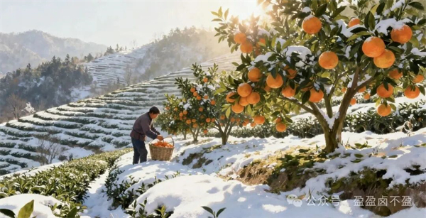 清晨的第一縷陽光灑在果園里,枝頭的積雪輕輕滑落,露出了被雪水浸潤過的金錢桔。它們像一個個小燈籠,在翠綠的枝葉間閃爍著誘人的光澤。果農(nóng)老張摘下一個,剝開薄薄的桔皮,酸甜的汁液在口中爆開,那是大自然最純粹的饋贈?!斑@場雪下得好?。 彼Φ脻M臉皺紋都舒展開來,“這樣的桔子,做出來的小桔茶才夠味?!?/p>