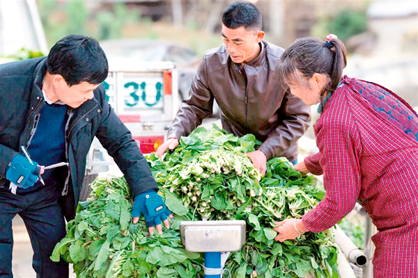 本網(wǎng)訊(通訊員 劉威 安少晨)正值冬季,紫陽(yáng)縣煥古鎮(zhèn)劉家河村的田野上涌動(dòng)著別樣的熱鬧。放眼望去,野油菜連成一片綠色海洋,肥厚的菜葉在陽(yáng)光下泛著鮮亮的光澤。田間地頭,村民們挎著竹籃、推著小車,彎腰采摘、麻利打捆;不遠(yuǎn)處的加工廠房里,分揀、清洗、稱重、裝壇的流水線有條不紊,勾勒出一幅“田間忙采收、車間忙加工”的豐收畫卷。
