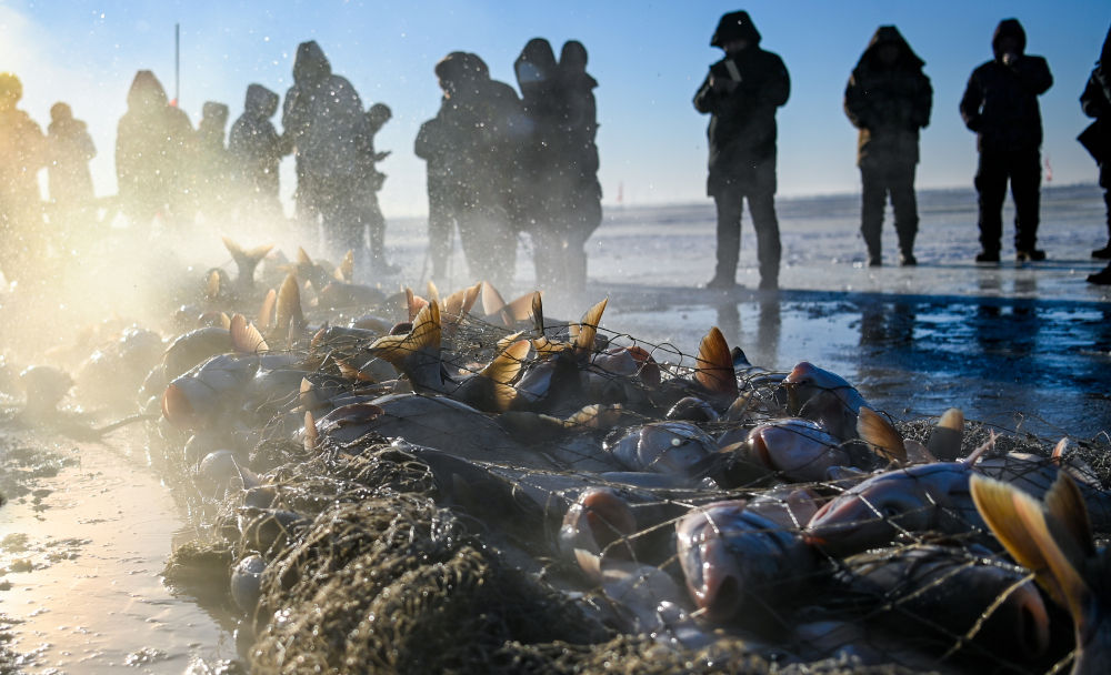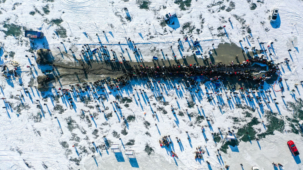 ??2021年12月26日,游客在查干湖冰面上觀看冬捕。近年來,查干湖在保護(hù)生態(tài)環(huán)境的基礎(chǔ)上,推動(dòng)冬捕的可持續(xù)發(fā)展,通過科學(xué)規(guī)劃捕撈量、加強(qiáng)漁業(yè)資源管理等措施,確保查干湖漁業(yè)資源的穩(wěn)定增長。