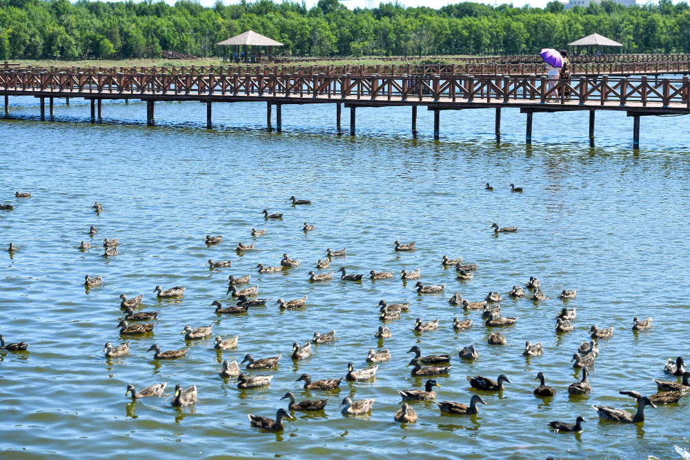 ??2024年8月26日,游客在查干湖野鴨島游覽。截至2025年5月9日,查干湖實(shí)施濕地保護(hù)與恢復(fù)項(xiàng)目24個(gè),保護(hù)區(qū)濕地面積達(dá)517.2平方公里,成為全球九大候鳥遷徙路線的“能量補(bǔ)給站”。隨著觀鳥、拍鳥熱潮興起,“觀鳥經(jīng)濟(jì)”為當(dāng)?shù)匚穆米⑷胄禄盍Α?/span>