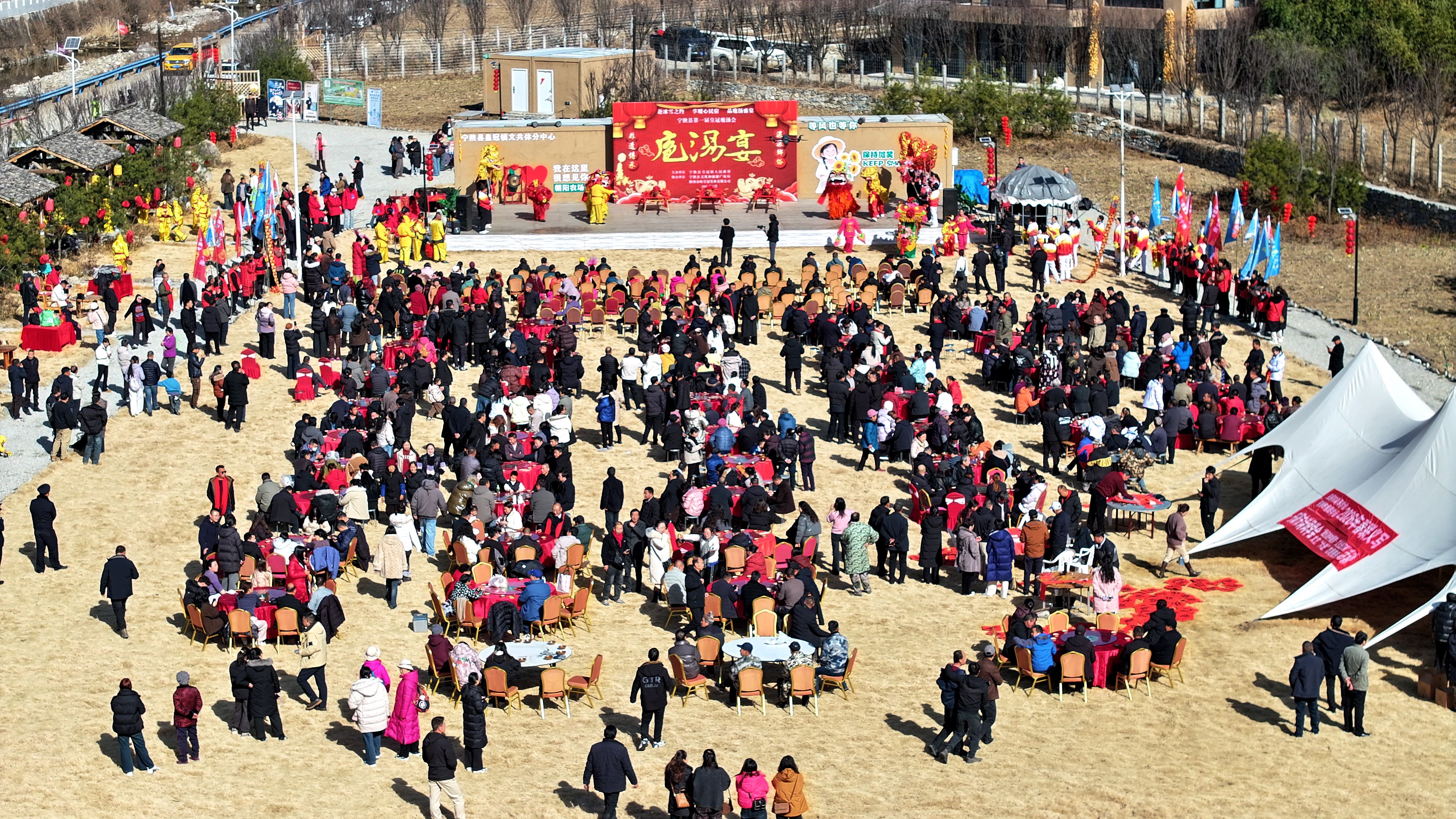 文化賦能是寧陜冬春旅游的核心亮點(diǎn)。1月16日,皇冠鎮(zhèn)朝陽農(nóng)場里首屆皇冠庖湯會(huì)熱鬧開席,《二嫂夸皇冠》的表演點(diǎn)燃現(xiàn)場氛圍,舞獅、彩船等傳統(tǒng)民俗輪番上演,莊重的祭天儀式傳遞著農(nóng)耕文明的厚重。活動(dòng)現(xiàn)場墨香陣陣,鄉(xiāng)土菜肴香氣四溢?!坝玫亩际乾F(xiàn)殺黑豬,味道特別地道?!蓖獾赜慰徒抠澆唤^口,西安游客葉格芳也直言:“專程前來,不虛此行?!贝舜吴覝珪?huì)共吸引游客2300余人,實(shí)現(xiàn)旅游消費(fèi)30萬元。